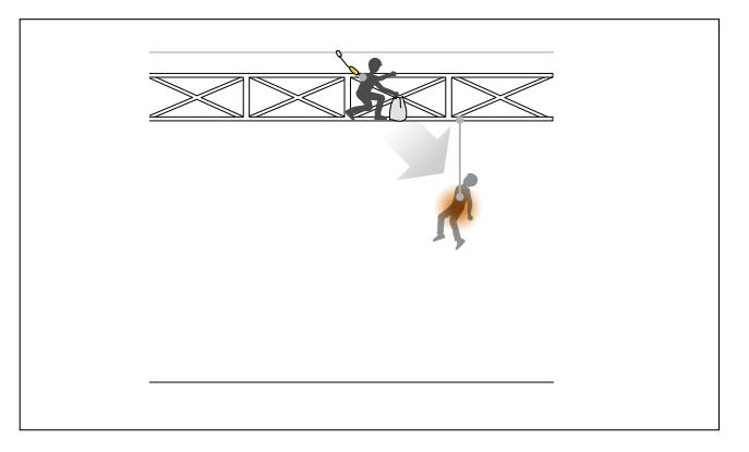 這是一個(gè)重量平衡系統(tǒng)。救援人員在一邊,被困者在另外一邊。救援人員通過(guò)提拉被困者一端的安全繩索使其不受力。被困者上升時(shí),救援人員下降。這個(gè)系統(tǒng)的優(yōu)點(diǎn)是使用較少裝備即可輕松操作。答動(dòng)平衡系統(tǒng)是最需要體力的一步。隨后,小心保持系統(tǒng)始終處于控制之中。如救援者和被困者體重差距較大時(shí),則需要非常小心。