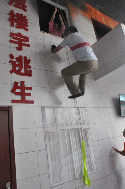 副會(huì)長(zhǎng)王有君親身體驗(yàn)高層樓宇緩降器