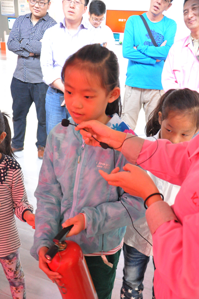走進(jìn)培訓(xùn)中心,豐富的體驗(yàn)點(diǎn)讓學(xué)生們歡呼雀躍,3D技術(shù)短片《災(zāi)難警示錄》播放過(guò)程中,地震來(lái)臨,成群老鼠亂竄,觀看的孩子情不自禁抬起雙腳遠(yuǎn)離地面;消防標(biāo)志識(shí)別系統(tǒng)、火災(zāi)隱患識(shí)別查找系統(tǒng)等寓學(xué)于樂(lè)小游戲,孩子們?cè)诎职謰寢尩膸椭逻厡W(xué)邊玩,邊相互比賽,不亦樂(lè)乎;滅火器激發(fā)孩子動(dòng)手欲望,孩子們眼睛緊緊盯著滅火器,不等解說(shuō)員講解完就迫不及待的體驗(yàn);在高層樓宇緩降器體驗(yàn)區(qū),劉宸鑠在爸爸的鼓勵(lì)下體驗(yàn)高層緩降,成功著地后,劉宸鑠歡呼的拽著爸爸一起高層緩降,體驗(yàn)完高層緩降之后,劉宸鑠爸爸告訴講解員:“剛開(kāi)始心里有點(diǎn)擔(dān)心,現(xiàn)在孩子和我都體驗(yàn)完之后,感覺(jué)很安全,孩子不但學(xué)會(huì)了高層緩降,發(fā)生火災(zāi)時(shí)能保護(hù)自己,而且鍛煉了孩子的勇氣”;119火災(zāi)報(bào)警系統(tǒng)區(qū)域,張笑芊一秒鐘也等不及的想要體驗(yàn),索性和旁邊同學(xué)共用一個(gè)電話體驗(yàn),兩人異口同聲的回答,引來(lái)家長(zhǎng)陣陣笑聲。