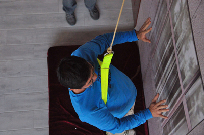學(xué)生爭(zhēng)先體驗(yàn)高層樓宇緩降器