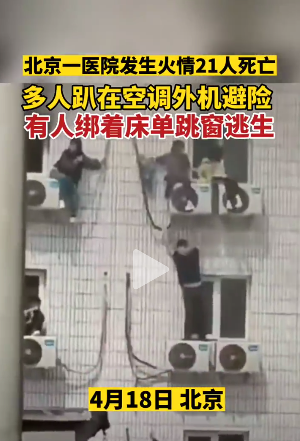北京市豐臺區副區長李宗榮通報:截至4月19日9時,經轉院救治無效,火災已致29人遇難,其中,26人為住院患者、1人為護士、1人為護工、1人為患者家屬。