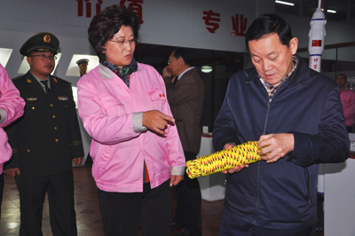 參觀過程中,馬總隊(duì)長對(duì)集團(tuán)研發(fā)的特種繩纜具有高強(qiáng)度、耐高溫、抗腐蝕、抗紫外線的特性給予充分肯定。