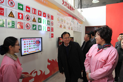 會議結束,參會人員一同參觀了集團自主研發生產的校園安全應急自救產品,對其所具備的實用性、安全性、便捷性給予肯定。