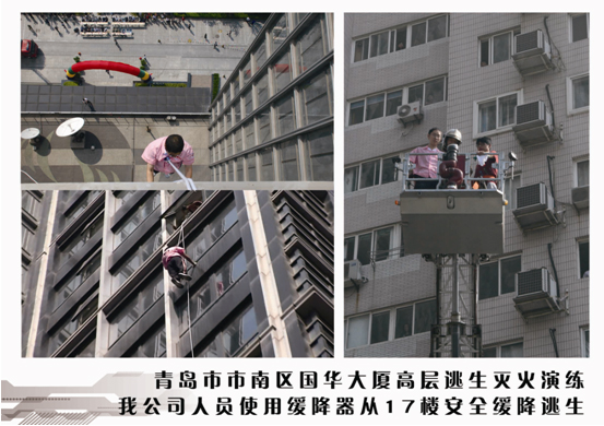 樓上濃煙滾滾,消防車呼嘯而至,人群用濕毛巾捂口鼻往外跑……9月21日上午,市南公安消防大隊(duì)聯(lián)合市南安監(jiān)局,在閩江路國(guó)華大廈進(jìn)行高層建筑火災(zāi)救援演習(xí)。此次活動(dòng),億和海麗有限公司的演示人員使用高層樓宇逃生緩降器自17層滑降至5樓平臺(tái),被消防戰(zhàn)士救走。據(jù)介紹,高層建筑發(fā)生火災(zāi),逃生緩降器是目前較為有效的逃離救生工具。