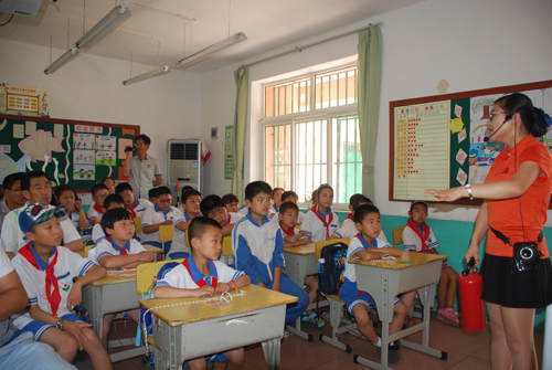 2015年5月13日,海麗雅集團員工走進青島市惜福鎮棉花小學,開展應急安全進校園公益活動,匯集點滴力量,為學生安全一路護航。