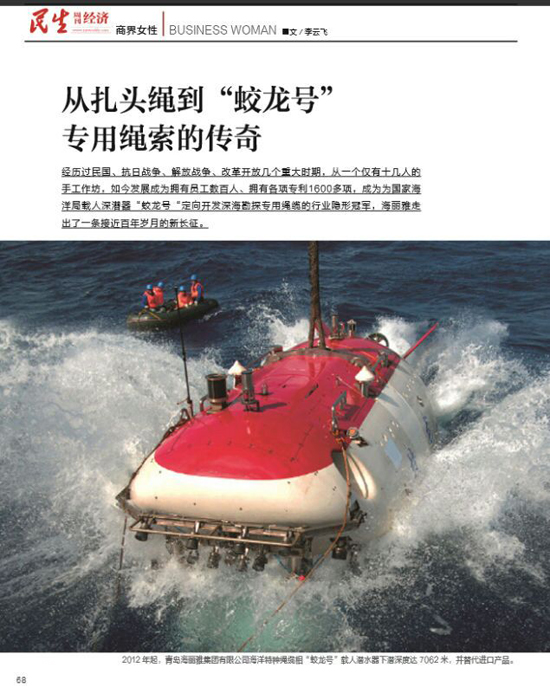 青島海麗雅集團94年專注一根繩子,在傳統(tǒng)與創(chuàng)新之間尋求突破,不斷為繩纜注入科技力量。公司完成了從純手工生產(chǎn)扎頭繩到為國家海洋科考船“大洋一號”、載人潛水器“蛟龍?zhí)?rdquo;等尖端領(lǐng)域研發(fā)、配備高科技特種繩纜,再到應(yīng)急自救產(chǎn)業(yè)的進(jìn)化,實現(xiàn)了從“中國制造”到“中國質(zhì)造”。