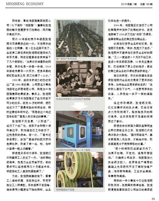 2016年3月,人民日報《民生周刊》增設(shè)了“商界女性”專欄。經(jīng)過中國女企業(yè)家協(xié)會推薦,海麗雅集團董事長張旭明成為該專欄首位中國女企業(yè)家。期刊在全國“兩會”期間向公眾呈現(xiàn)百年企業(yè)的傳奇發(fā)展歷程。