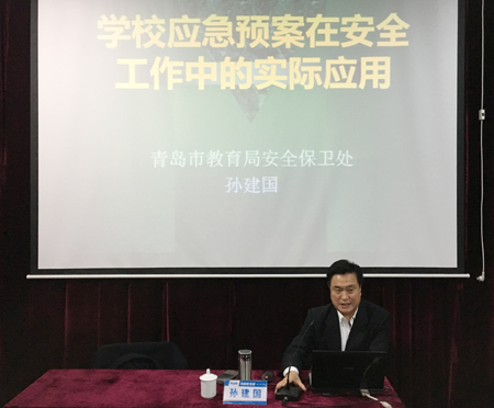 市教育局安保處處長孫建國為學員授課《學校應急預案在安全工作中的實際應用》