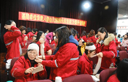 培訓邀請了來自市應急辦、教育系統及應急領域的相關專家進行專業授課,課程結合幼兒園場所、幼兒的特殊性以及需應對的各類潛伏災難的特點進行設置。在四天培訓過程中,學員們將從幼兒園風險評估與應急準備、傷員評估、醫療救護、應急預案的編制及實施、幼兒園的隱患排查及消防工作、應急第一響應人(園長)培訓及體驗等層面進行專業的理論與實操學習。此外,實操培訓現場青島市應急安全體驗培訓中心專業應急講師一對一為學員們進行指導。在緊張理論與實戰學習的同時,學員們進行了“體驗式”應急安全培訓并觀摩了應急安全劇奇妙夢旅行。