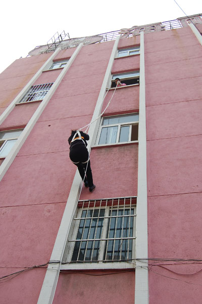 2010年11月19日下午,青島億和海麗高強(qiáng)力安全防護(hù)用品有限公司開展了高空火災(zāi)防護(hù)自救互救演習(xí)。57歲的梁子蘭率先從高空使用救生緩降器安全下落到地面,并給大家現(xiàn)場(chǎng)講解使用方法,活動(dòng)吸引了大批市民參與并現(xiàn)場(chǎng)觀摩。