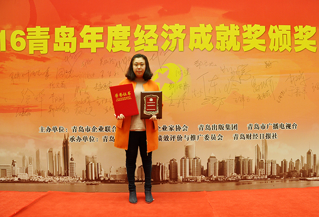 4月8日,由青島企業聯合會、青島企業家協會、青島出版集團、青島電視臺聯合舉辦的“新變革 新動能 新典范—2016年青島年度經濟成就獎頒獎典禮”在青島電視臺800米演播大廳舉行。經過層層評選,青島海麗雅集團榮獲“2016青島年度最具創新力企業”稱號,海麗雅集團副總經理鄭文嬌代表企業參會受獎。