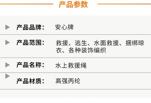 安心牌洪水救援時繩索抗拉強度高、漂浮于水面、不易老化、色彩美觀。增加了搜救人員在夜間、濃煙、地下等光線無照射或者無光線的環境中的可視距離,救生目標更明顯,更便于施救。