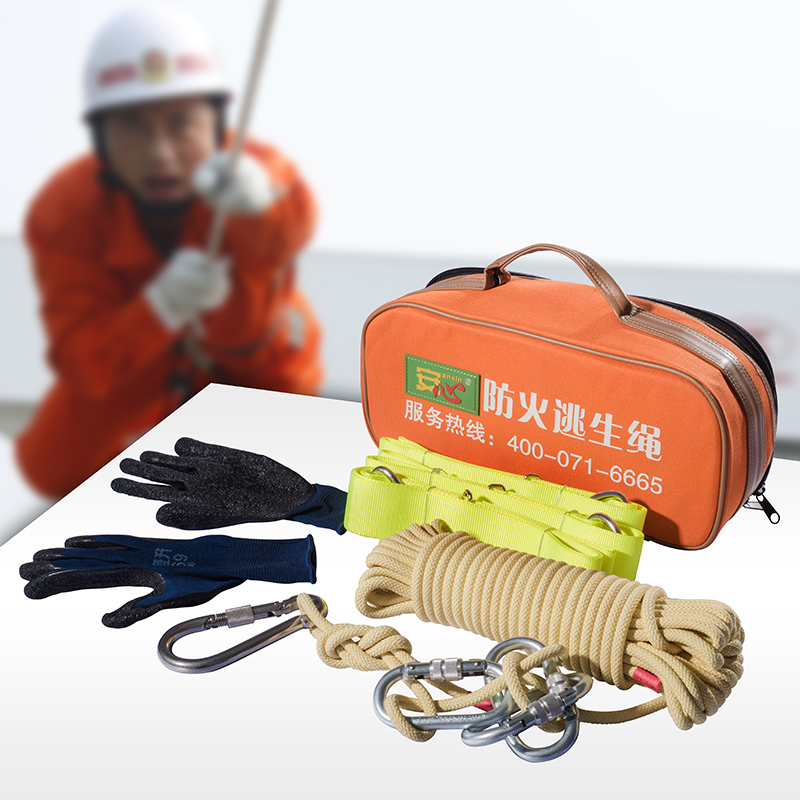 火災高空逃生繩內芯采用鋼絲,外包由尼龍線編織而成,下降時中途遇到火情不易燒斷,依然可以自行緩慢下降,保證了逃生安全。