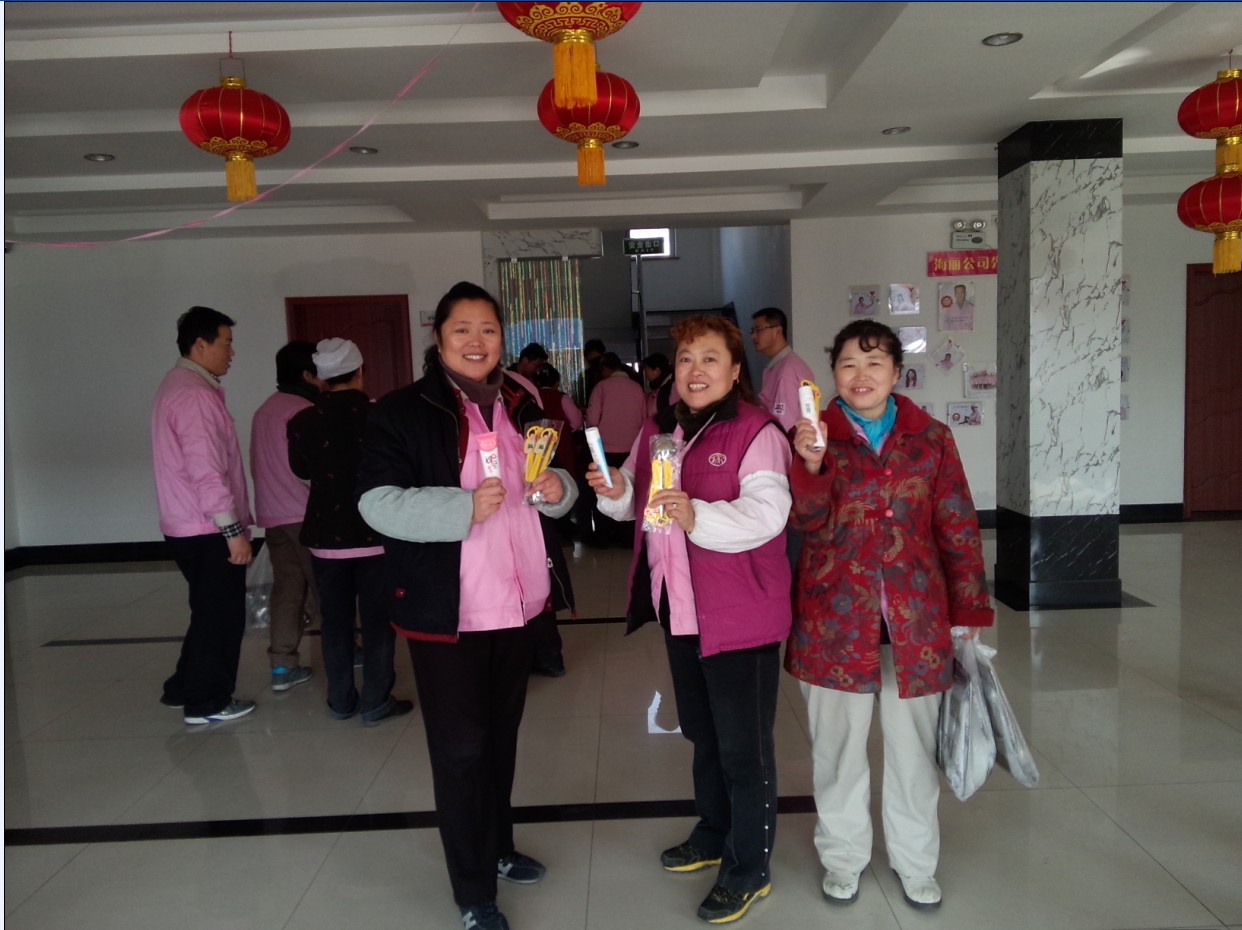 鬧元宵:“每逢佳節倍思親”, 節日當天,因公司非本市員工不能與家人團聚共渡佳節,在董事長提議下,黨支部副書記、工委主席崔俊芬女士帶領大家一起,專門為外來務工人員和在公司住宿的大學生煮元宵、包水餃,并同大家一起過節。領導的體貼和關懷,讓大家切身感受到“海麗大家庭”的溫暖。