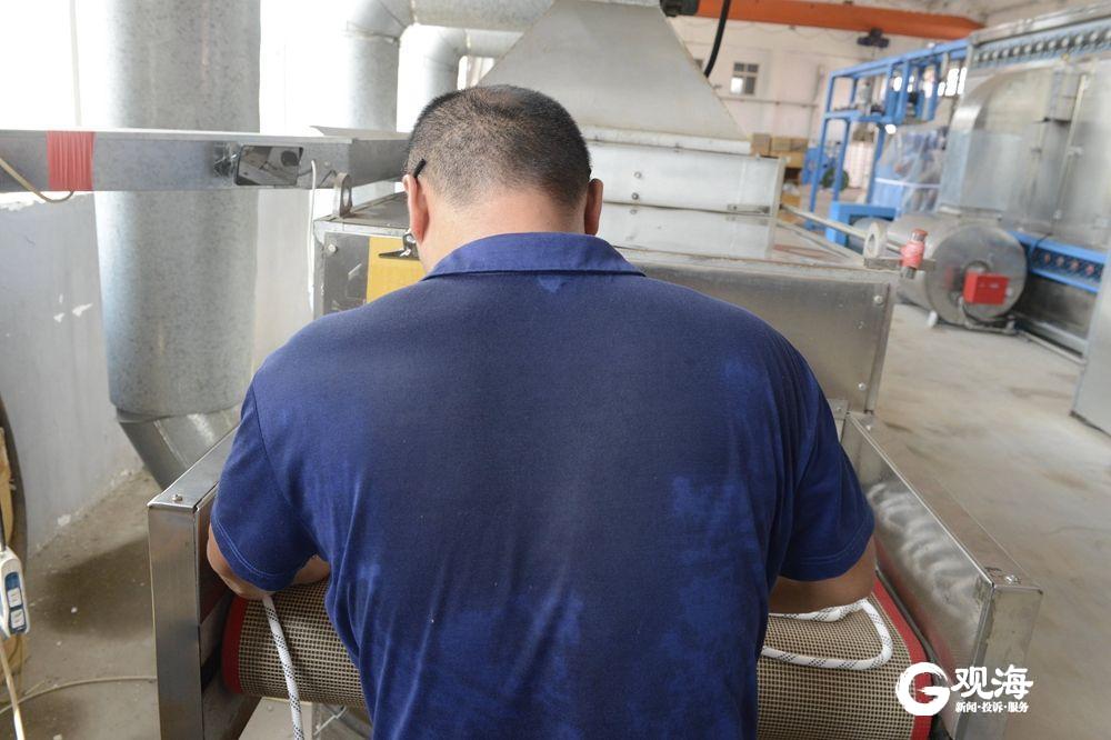 記者在熱浪襲人的生產(chǎn)車間見到周光耀時,他正在50多度高溫的爐前將成型繩索整理送進爐膛高溫處理。