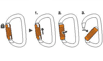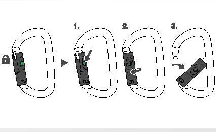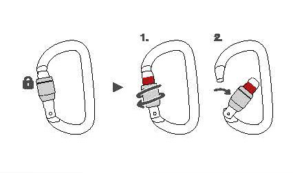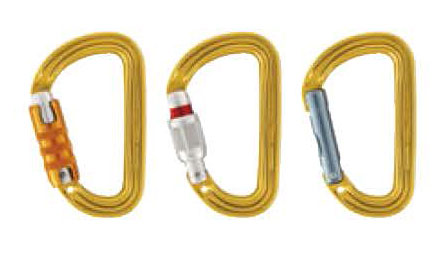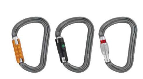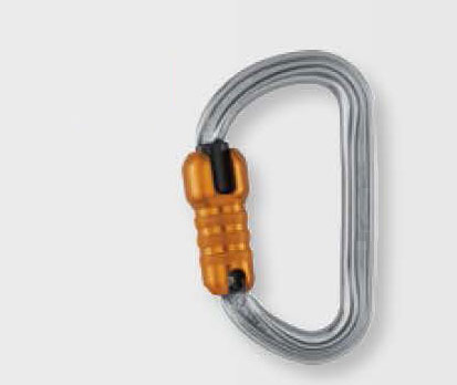 由鋁合金制成,它的橢圓外形可使較寬的裝備如滑輪、上升器和移動止墜器位于比較好的位置。流暢的內部設計讓使用更為簡便。它有多種上鎖系統:自動鎖門或手動鎖門。可與固定桿配合使用,能使安全鉤在主軸受力,減少翻轉的風險,并保持與裝備的連接。