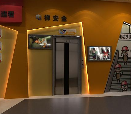 電梯事故體驗裝置展示目的:通過模擬現實生活中的電梯,使參觀者了解當遇到電梯故障時,如何應對的手段和方法。 電梯事故體驗裝置展示形式: 制作一個模擬的電梯間,電梯門可以開啟和關閉。當人們進入模擬的電梯后,選擇樓層按鈕可以開始模擬運行,在開始到運行時,突然出現電梯故障,例如:不運行、停電開速下降等。為了逼真體驗,在電梯內部安裝有電視機,運行時,電視配合場景變化。