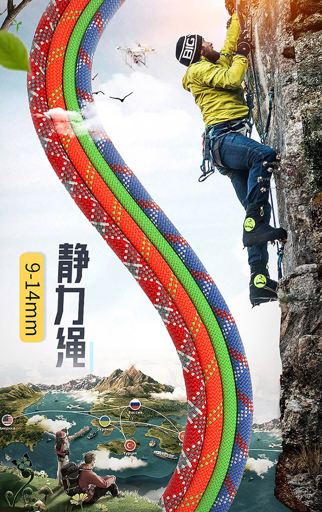 攀巖繩索采用高強杜邦絲材質,高強拉力,不易老化,張力控制精準,長距離使用拉力損耗小。