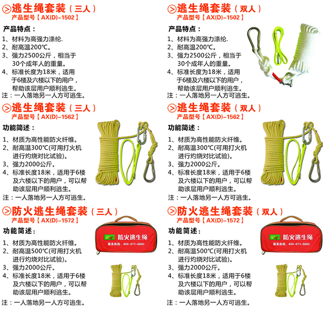 警告:凡涉及使用緩降逃生繩的活動(dòng)都具有一定的危險(xiǎn)性。在使用此產(chǎn)品前,請(qǐng)您必須:閱讀并理解全部使用指南;使用正確的方法進(jìn)行認(rèn)真、嚴(yán)格的訓(xùn)練;熟悉產(chǎn)品的性能及使用限制條件;理解并接受所涉及到的危險(xiǎn)!