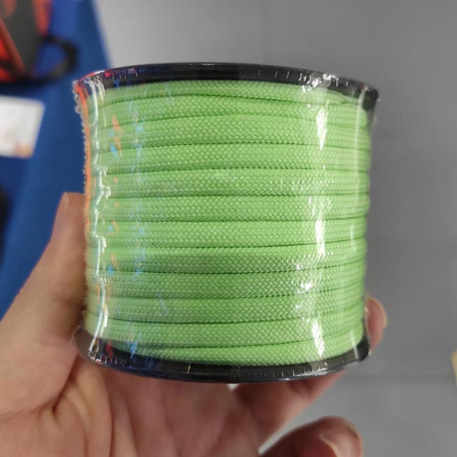 近年來,夜光材料的發(fā)展進(jìn)入了生產(chǎn)廠家的視線,從而開發(fā)出夜光繩索,在黑夜漆黑一片,夜光導(dǎo)向繩就像螢火蟲一樣。指引你的前方。而且夜光導(dǎo)向繩也在演藝領(lǐng)域,工藝領(lǐng)域越來越受到買家的青睞。顏色可以按照客人任意選擇,繩索按承受拉力分為“250“和“550”兩種規(guī)格,即承受250磅(約113千克)和550磅(249千克)拉力。
